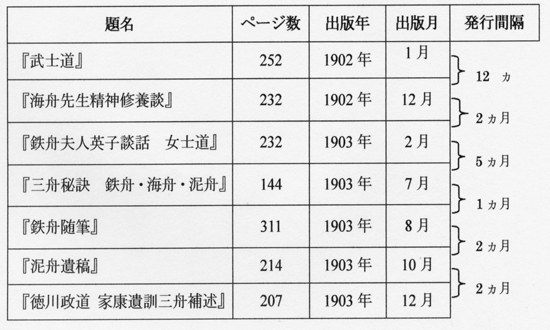 安部正人は最初から山岡鉄舟関係のシリーズを世に出すつもりだったらしい。安部は具体的な題名を掲げないが、『武士道』(1902)の終りに